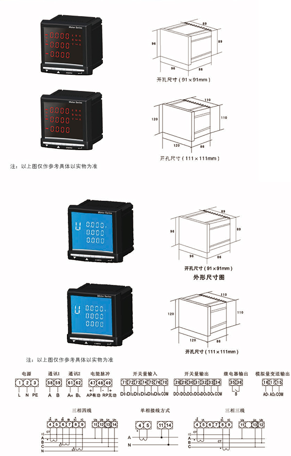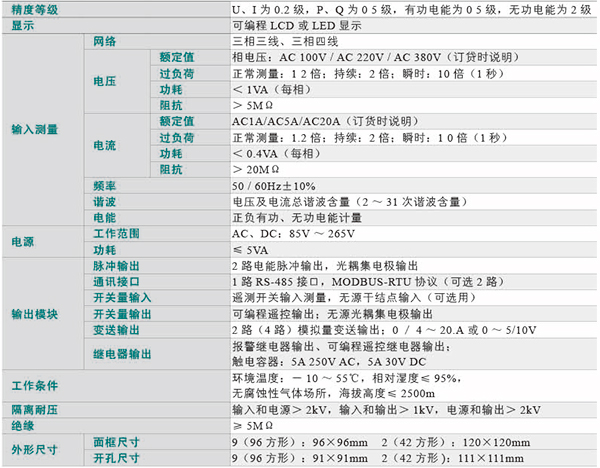 可以測量三相電壓、三相電流、各相的有功及無功功率、總有功功率、總無功功率功率因數(shù)、頻率、電能,可以實現(xiàn)復(fù)費率電能計量、測量電網(wǎng)電壓、電流的2~3l次諧波含有率、總諧波畸變車THD,可以測量電網(wǎng)的正序/負(fù)序自壓,正序/負(fù)序電流和不平衡度(三相四線制)。最多可提供6路開關(guān)量輸入功能,采用干節(jié)點電阻信號輸入方式。最多可提供6路開關(guān)量輸出功能,可用于各種場所下的報警指示、保護(hù)控制輸出功能。提供2路模擬量變送輸出功能,使其設(shè)備與DCS控制系統(tǒng)接口功能。提供有功電能、無功電能兩路脈沖輸出。RS-485通訊接口MDDBUS-RTU通訊協(xié)議??梢凿?0條開關(guān)量輸入SOE事件。
